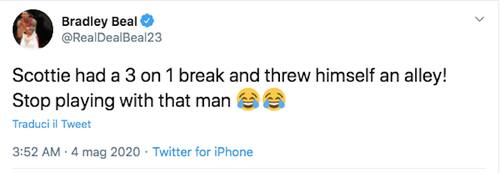 Anche Bradley Beal, sempre molto attivo durante le puntate di "The Last Dance", non perde occasione per commentare le prodezze sul parquet di quei Bulls e in particolare di Scottie Pippen