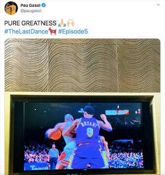 Particolarmente commosso anche Pau Gasol, che per anni ha condiviso il parquet con Bryant. Allegando una foto del testa a testa tra Bryant e Jordan non può che alzare le mani di fronte a tanta grandezza
