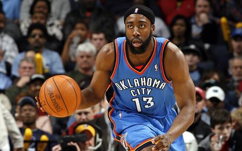 JAMES HARDEN | La carriera di Harden è iniziata (dalla panchina) in maglia Thunder: tre stagioni, una progressione continua che lo ha portato nel 2012 a vincere il premio di sesto uomo dell’anno. Poi l’ascesa a superstar con la maglia dei Rockets, ma il suo ruolo nella storia (recente) di OKC è assicurato