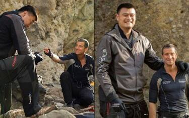 Il famoso personaggio televisivo - conduttore di Man vs Wild - noto per le sue avventure in condizioni estreme, ha postato sul suo profilo Instagram delle curiose foto insieme all'ex stella cinese della NBA Yao Ming. Di fronte ai 229 cm di Yao Bear Grylls sembra quasi un bambino "ma sono 1,80!" scrive. Le foto risalgono a delle riprese fatte in Cina, in cui i due si sono cimentati con una scalata