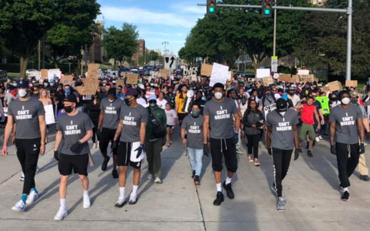 george floydIl n°34 dei Bucks ha preso parte alla marcia di “Black Lives Matter” nella città del Wisconsin, assieme a un gruppo nutrito di compagni di squadra. L’MVP in carica ha poi parlato con la folla, spiegando le ragioni della sua presenza e lanciando in maniera indiretta anche un indizio di mercato