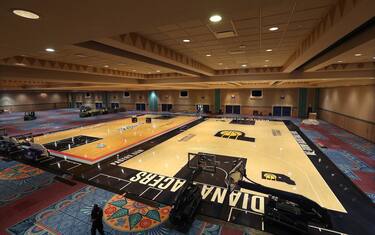 Nelle gigantesche ballrooms degli alberghi di Disney World hanno cominciato a essere posizionati i campi delle squadre, che verranno utilizzati per gli allenamenti di ciascuna franchigia