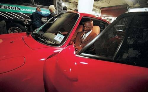 PORSCHE 911 TURBO S | A differenza della versione bianca cabriolet acquistata dopo la conquista del terzo titolo NBA in carriera, Jordan ha più volte utilizzato questa versione rosso fuoco per farsi immortalare anche a bordo in pose chiaramente studiate