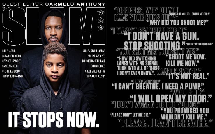 Un’immagine potente, efficace, catartica. Carmelo Anthony che veste il suo ormai immancabile cappuccio sulla testa e guarda fisso nell’obiettivo assieme al figlio Kiyan: questa la copertina del numero speciale pubblicato da SLAM per parlare delle discriminazioni razziali e sfruttare ancora una volta la capacità di raccogliere attenzioni da parte degli sportivi e in particolare dei giocatori NBA. Il numero 00 dei Blazers da oltre un decennio è una delle voci simbolo nella lotta alle disuguaglianze, uno dei primi a dirsi possibilista di fronte all’eventualità di non scendere sul parquet nelle prossime settimane nel momento della ripartenza della stagione per provare a lanciare un messaggio ancora più forte. La lega infatti da oltre un mese ha fatto sentire la sua voce - anche in strada durante le manifestazioni - a sostegno del movimento “Black Lives Matter”, riesploso in maniera fragorosa negli USA a seguito dell’uccisione di George Floyd. Come spiegato dallo stesso Anthony nel lancio sui social della lettera che ha scritto su SLAM, bisogna riuscire a farsi forza guardando alle storie del passato, lottare per la giustizia nel presente e chiedere uguaglianza per il futuro. Un messaggio chiaro, che coinvolge tutte le generazioni di afroamericani e non solo. A partire da suo figlio, diventato anche lui simbolo di quel “It stops now” che non ammette repliche, ma chiede immediatezza nelle decisioni e nel cambio di rotta. “Non parlo per me, ma lo faccio a nome di tutti quelli che non vengono ascoltati: dobbiamo continuare a pretendere che le cose cambino, a fare progressi. Stiamo cercando di farcela in ogni modo e non possiamo di certo fermarci adesso”. In una pubblicazione che ospita interventi di rilievo come quelli di Bill Russell, Oscar Roberson, Stephen Jackson e Kareem Abdul-Jabbar, la voce di Anthony e la sua lettera - letta stesso da lui in un efficace video subito diventato virale sui social - restano il contributo più efficace: “Le ombre scure sulla mia pelle non fanno altro che aggiungere delle ombre alle mie lacrime”.