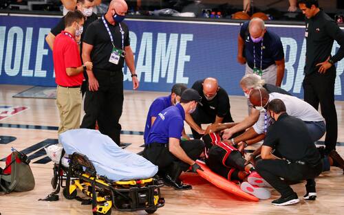 Le procedure anti-Covid prevedono un particolare protocollo anche quando si tratta di intervenire e soccorrere i giocatori infortunati per evitare il più possibile contatti e rischi di contagio: per i compagni di squadra sono stati secondi angoscianti quelli trascorsi accanto all'immobile Derrick Jones Jr.