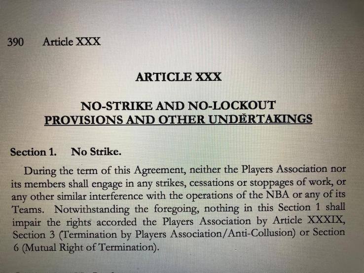Lo sciopero infatti si definisce come una “interruzione non autorizzata del proprio lavoro”, uno stop volontario e organizzato delle prestazioni lavorative, fatto con l’intenzione di avanzare una serie di domande - spesso legate alla retribuzione e a chiedere diritti economici e non, ottenere benefici e condizioni di lavoro più sicure. Al netto delle rimostranze - che nel caso NBA non erano certo rivolte alle condizioni salariali - la logica è proprio quella: “Se i giocatori hanno una partita in programma per quel giorno e non si presentano in campo perché hanno dei problemi e vogliono protestare, quello non può che definirsi sciopero”, sottolineano gli esperti interpellati dal New York Times. Per i giocatori NBA però sarebbe potuto diventare un problema chiamarlo sciopero, perché avrebbe avuto delle implicazioni economiche e legali ben diverse: “Chiamarlo così, soprattutto vista l’unità di intenti tra giocatori, proprietari e dirigenti NBA, è stata un modo per evitare complicazioni nella gestione delle cose”, continua a spiegare il NY Times. In realtà, andando a leggere quanto previsto dal CBA che regola i contratti dei giocatori NBA (immagine riportata in basso), lo sciopero è vietato, così come ogni altra interruzione o interferenza con le operazioni della lega o di ognuna delle squadre. La domanda però resta: chi fa informazione, perché non si è posto il problema? Il boicottaggio infatti ha delle implicazioni economiche ben diverse , vuol dire mettere in difficoltà un business, piegarne le logiche commerciali. Attirare l’attenzione del pubblico con l’obiettivo di influenzare il modo di fare soldi della propria azienda. “Mettersi insieme per rifiutare di fare affari con, in maniera tale da punirlo sotto l’aspetto economico”. Insomma, tutta un’altra cosa.