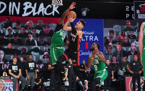 Sempre davanti dalla palla a due fino alla sirena finale, i Celtics hanno 4 giocatori con almeno 20 punti, rispondendo da squadra nel momento di necessità. Se il quartetto Brown-Tatum-Smart-Walker funziona alla perfezione, i biancoverdi festeggiano anche il ritorno in campo dopo un mese di Gordon Hayward. A Miami non bastano i 27 punti con 16 rimbalzi di Bam Adebayo