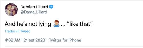 Non poteva mancare anche il commento di Damian Lillard - molto attivo sui social in questi ultimi giorni: lui che di canestri alla sirena se ne intende, rende onore a un altro super All-Star NBA