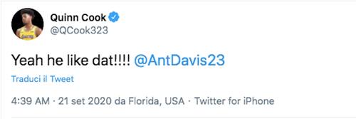 Su Twitter, oltre a ribadire il concetto, LeBron rilancia il video pubblicato dalla pagina ufficiale NBA: uno slow motion che ben racconta la prodezza di Davis