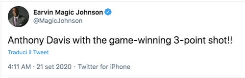 Poi torna più diplomatico Magic, a spiegare cosa sia successi ai (pochi) suoi follower che magari non erano collegati: sì, l'ha vinta Anthony Davis