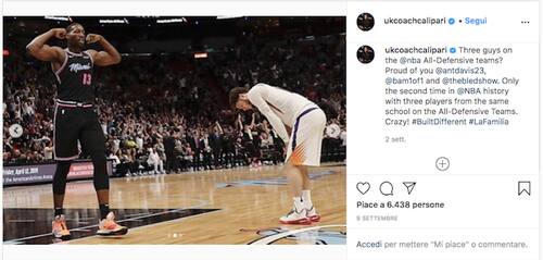 JOHN CALIPARI SU BAM ADEBAYO | Il lungo di Miami è uno dei tre giocatori di Kentucky a venire inserito nei quintetti difensivi NBA per la stagione 2019-20 (gli altri due sono Anthony Davis e Eric Bledsoe): "Solo la seconda volta nella storia che un unico college mette tre giocatori tra i primi dieci difensori", fa notare Calipari, che fa seguire il messaggio da un hashtag significativo: #LaFamilia