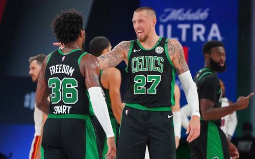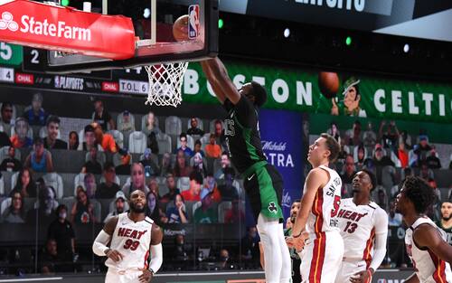 Boston trova infatti il modo di attaccare la zona messa in campo da coach Spoelstra che più volte aveva mandato in cortocircuito la fase offensiva dei Celtics: Daniel Theis da bloccante (e all’occorrenza tiratore dalla media) fa saltare i piani degli Heat, autore di una partita da 15 punti, 13 rimbalzi, 6/10 al tiro e 3 stoppate. Le sue giocate si aggiungono ai 27 punti combinati (con cinque triple) dal duo Smart-Walker: i Celtics insomma, spalle al muro, sfruttano al meglio tutte le armi a loro disposizione