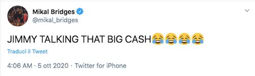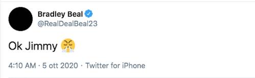 Quanto vorrebbe giocarla anche Bradley Beal una partita del genere, che nel frattempo rende merito a Jimmy Butler e alla sua forza