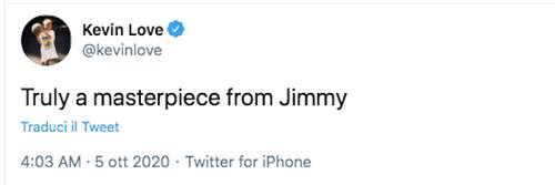 Concetto sintetizzato molto bene da Meyers Leonard, partito in quintetto insieme a Butler: "Il tweet di questa sera è lui"