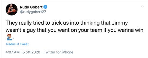 Rudy Gobert torna ad attaccare: "C'era qualcuno che voleva farci credere che Butler non fosse l'uomo giusto per provare a vincere"