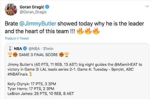 Un tributo unanime nei suoi confronti, arrivato anche dai compagni di squadra che non sono potuti scendere in campo come Goran Dragic: "Questo è il motivo per cui lui è il cuore del nostro gruppo"