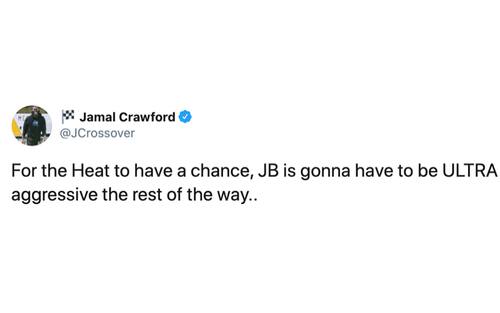 Crawford invece chiama al proscenio Jimmy Butler: "Deve essere ULTRA aggressivo per dare una chance agli Heat". Per la stella di Miami non sono bastati 6 punti e 5 assist nel solo ultimo periodo