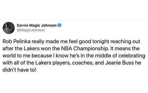 Magic ringrazia anche la chiamata ricevuta da Rob Pelinka, che non più tardi di un anno e mezzo fa aveva definito come "un traditore": "Vuol dire tantissimo per me la sua chiamata, non ce n'era bisogno"