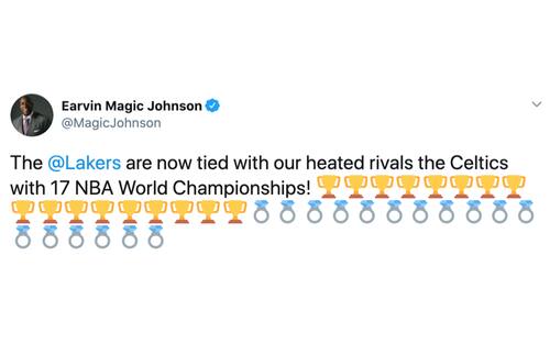 Con questo titolo i Lakers hanno raggiunto i Boston Celtics in cima all'albo d'oro NBA con 17 anelli