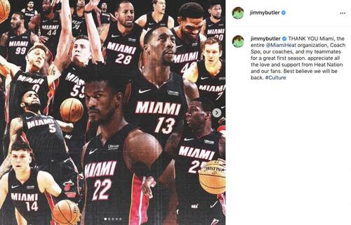 Al termine della gara, Jimmy Butler affida a Instagram i suoi pensieri e i suoi ringraziamenti per una grande stagione