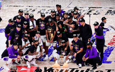 La squadra di Los Angeles ha dominato in gara-6 e conquistato con merito il titolo NBA: una vittoria diversa dalle altre per ambiente e contesto, arrivata all'interno della bolla di Orlando e senza tifosi sugli spalti. Questo non ha certo lenito la gioia di LeBron James e compagni, pronti a godersi il meritato trionfo anche restando "a distanza" dagli appassionati. Queste alcune immagini della festa Lakers