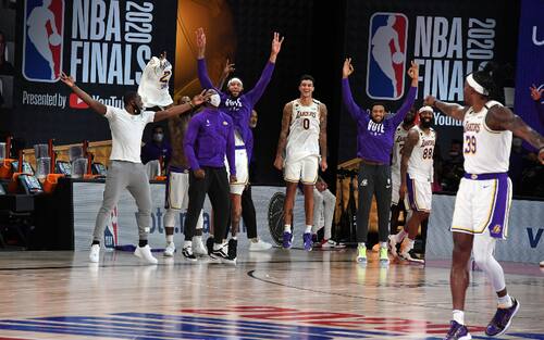 L'ultima azione di gioco di questa stagione 2019/20 firmata Lakers è stata una tripla da lontanissimo a bersaglio di Dwight Howard: un canestro festeggiato da tutti i compagni come un gol decisivo al 90° minuto