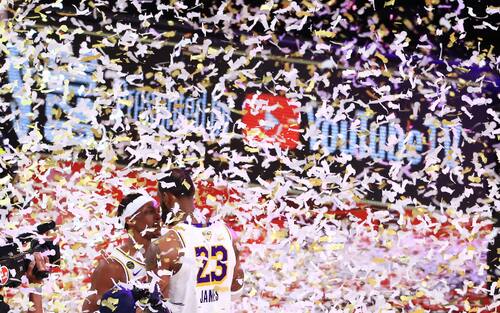 Uno dei primi abbracci, tra i più sentiti e toccanti, è stato quello tra LeBron James e Rajon Rondo - due dei principali artefici del successo gialloviola in questa stagione e in questa particolare cavalcata playoff nella bolla