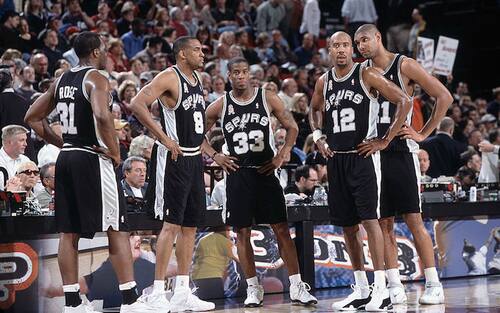 NBA | STEVE SMITH, SAN ANTONIO SPURS (2003) | Dall’Oregon Smith si sposta in Texas, approdando agli Spurs che stanno costruendo la loro dinastia e che lo utilizzano in quintetto in 18 delle 53 partite che gioca in stagione regolare [è il n°8 nella foto, ndr]. Per la prima volta scende sotto la doppia cifra di media in carriera, ma vince il titolo — quello mai raggiunto a livello NCAA con la maglia di Michigan State