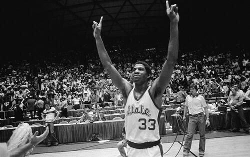 NCAA | MAGIC JOHNSON, MICHIGAN STATE SPARTANS (1979) | Al secondo anno agli Spartans centra la vittoria nella leggendaria finale contro Indiana State e Larry Bird: in stagione viaggia a 17.1 punti, 8.4 assist e 7.3 rimbalzi di media. Era già “magic”…