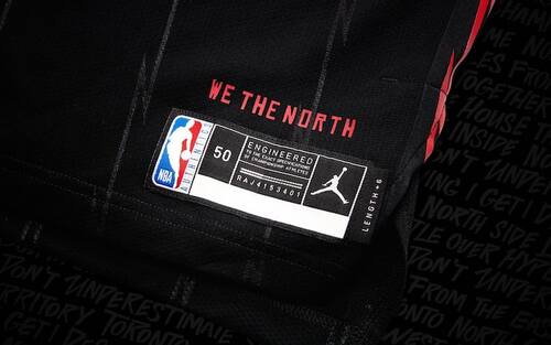 Sulla maglia appare ovviamente lo slogan della squadra: "We The North"