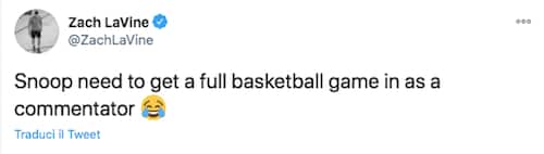 ZACH LAVINE | Il giocatore dei Bulls è stato tra i primi a sottolineare quello che molti hanno poi ripetuto: il vero spettacolo è stato ascoltare Snoop Dogg al microfono impegnato con la telecronaca della sfida. Un esperimento da riproporre anche con una partita NBA...