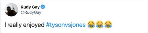 RUDY GAY | Un altro di quelli che ha sfidato più volte sul parquet Nate Robinson, incollato davanti la TV: "Mi sono divertito", usando l'hastag del match successivo che vedeva coinvolto Mike Tyson