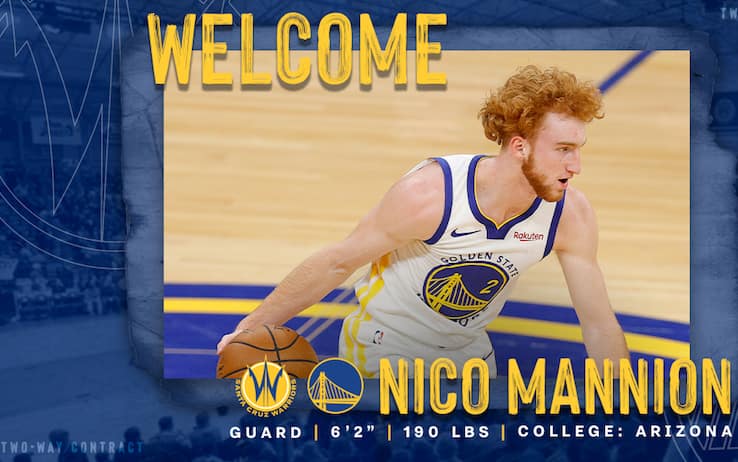 I Golden State Warriors — come le altre 29 squadre NBA — hanno consegnato alla lega i roster ufficiali per il via e il nome di Nico Mannion compare insieme a quello, eccellente, di Klay Thompson sotto la categoria “Giocatori inattivi/two way”. Ovvero: l’azzurro non sarà in campo nella prima gara della stagione dei suoi Warriors, che nella sfida a Brooklyn contro i Nets inaugurano il campionato 2020-21, la 75^ stagione della storia NBA. Mannion infatti, proprio nella giornata che segna il via del nuovo campionato, è stato messo sotto contratto dai Santa Cruz Warriors, la squadra di G League controllata dagli Warriors, con il classico "two-way contract" che quest'anno però consente a ogni giocatore di poter disputare fino a un massimo di 50 partite in NBA. Ci sarà tempo quindi per Mannion per entrare — la speranza è stabilmente — nelle rotazioni di Steve Kerr (che intanto segue anche con interesse la possibile firma di Jeremy Lin): “So che giocherà nella G League — ha dichiarato Mannion a Repubblica riferendosi all’ex protagonista della “Linsanity” — non lo vedo come un problema”. E l’atteggiamento di Mannion, almeno dalle sue parole, resta fortemente positivo, come è giusto che sia: “Mi sembra ancora tutto irreale — dice — ma devo abituarmi in fretta: prima delle partite di preseason ho dormito poco e male, ma mi aspettano 72 gare, mi conviene imparare a gestire la pressione e pensare a una gara per volta”.