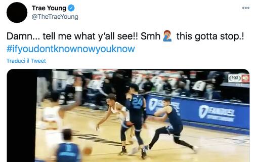 L’AZIONE INCRIMINATA | Young accusa Allen di aver provato a sgambettarlo pericolosamente durante la sfida tra Hawks e Grizzlies di sabato scorso. “Dannazione, ditemi voi cosa vedete qui. Tutto questo deve finire”, ha scritto su Twitter Young, a commento di un video in cui si vede Allen inseguire la stella di Atlanta su un blocco finendogli sopra col suo piede