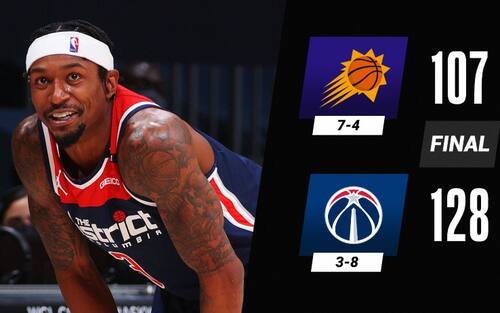 WASHINGTON WIZARDS-PHOENIX SUNS 128-107 | Si interrompe la striscia di tre sconfitte consecutive degli Wizards che, nonostante l’assenza di Russell Westbrook, conquistano il primo successo casalingo contro Phoenix grazie al solito super contributo da parte di Bradley Beal. Washington scappa via sin dalla palla a due, tocca le 32 lunghezze di vantaggio nel secondo quarto e non si volta più indietro