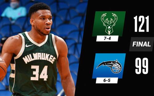 ORLANDO MAGIC-MILWAUKEE BUCKS 99-121 | Giannis Antetokounmpo segna 22 punti al rientro dopo una gara d’assenza causa infortunio alla schiena e guida i Bucks al successo contro i Magic. Il n°34 greco tira 8/16 dal campo, raccoglie sei rimbalzi in un match in cui deve gestire problemi di falli per tutto il secondo tempo. Ai suoi canestri si aggiungono i 20 punti a testa di Khris Middleton e Bobby Portis in uscita dalla panchina che permettono a Milwaukee di portare a casa il settimo successo in 11 gare nonostante il 7/24 dall’arco di squadra dopo tre quarti