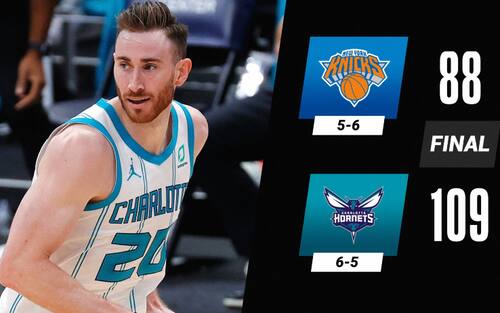 CHARLOTTE HORNETS-NEW YORK KNICKS 109-88 | Sempre in vantaggio per 48 minuti e alla fine vincenti gli Hornets che battono in casa i Knicks e portano il proprio record per la prima volta in stagione oltre il 50% (6-5). Merito della capacità di saper capitalizzare le 17 palle perse di New York - trasformate in 24 punti - e di mandare ben cinque giocatori in doppia cifra. Agli ospiti invece non basta un quintetto tutto con almeno dieci punti, in un match da 39% dal campo di squadra e 24% dall’arco