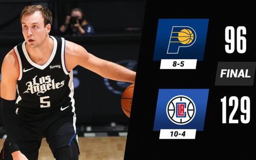 L.A. CLIPPERS-INDIANA PACERS 129-96 | Tutto facile per i Clippers in casa contro Indiana, in un match in cui L.A. controlla per due quarti, cambia marcia nella terza frazione (39-20 il parziale) e non si volta più indietro, raccogliendo giocate e canestri da tutta la rotazione. Alla sirena finale sono sette i giocatori in doppia cifra, di cui tre a quota 20 - Luke Kennard, Marcus Morris e Paul George, con sette canestri a testa dal campo - a cui si aggiungono i 17 in 31 minuti di un chirurgico Kawhi Leonard