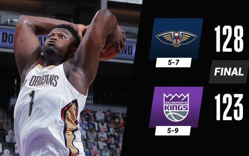 SACRAMENTO KINGS-NEW ORLEANS PELICANS 123-128 | Successo meritato raccolto nel finale di gara dai Pelicans, in vantaggio anche di 19 lunghezze nel primo tempo e poi sofferto negli ultimi minuti in cui a pesare è la precisione a cronometro fermo di New Orleans. Gli ospiti vincono la lotta a rimbalzo (48-33, con 10 solo rimbalzi dei Kings in tutto il primo tempo) e chiudono tirando oltre il 50% di squadra per la seconda volta in stagione (52.9% complessivo)