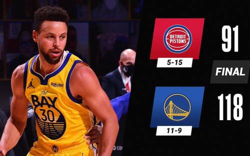 GOLDEN STATE WARRIORS-DETROIT PISTONS 118-91 | Tutto facile per Golden State, che non rischia neanche per un secondo che la vittoria le sfugga di mano sfondando anche i 30 punti di vantaggio contro i Pistons. Steph Curry ne approfitta per sistemare le percentuali chiudendo con 28 punti, 11/17 dal campo e 6/8 dalla lunga distanza, seguito dai 20 di Andrew Wiggins e i 18 di Kelly Oubre. Jordan Poole ne mette 16 dalla panchina, rischiando di rimandare il suo viaggio verso la bolla della G-League (dove invece è diretto Nico Mannion)