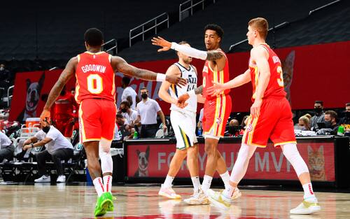 Atlanta invece è costretta a fare a meno di Trae Young - alle prese con un dolore al polpaccio destro e rimasto a riposo nella seconda notte di partite consecutive: in quintetto parte Rajon Rondo, mentre i migliori realizzatori a fine gara sono John Collins con i suoi 17 punti e 7 rimbalzi a cui si aggiungono i 16 di Kevin Huerter. I padroni di casa infatti non fanno mai canestro, tirano con il 32.7% di squadra e raggiungono così le tre partite in fila senza successi