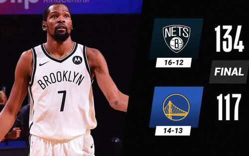 In un quintetto tutto in doppia cifra, il miglior realizzatore è Kyrie Irving con 23 punti e la solita efficienza al tiro (10/17 dal campo), mentre James Harden ha sfiorato la tripla doppia con 19 punti, 8 rimbalzi e 16 assist con 5/8 da tre punti. Bene anche Bruce Brown con 18 e 7 rimbalzi e Joe Harris con 15, accompagnati dai 14 di Jeff Green dalla panchina per un altro largo successo di Brooklyn su Golden State dopo quello della Opening Night