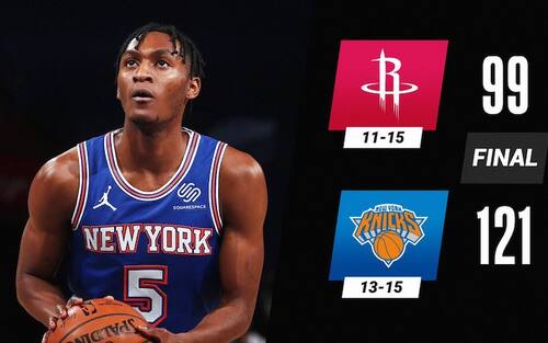 NEW YORK KNICKS-HOUSTON ROCKETS 121-99 | I 22 punti a testa di Julius Randle e dell’infuocato Immanuel Quickley servono ai Knicks per infliggere la quinta sconfitta consecutiva ai Rockets, che dopo un buon avvio a seguito della trade di Harden (e l’infortunio di Christian Wood) sembrano essersi persi. Derrick Rose ne aggiunge 16 in una serata da 52% al tiro per i padroni di casa, rendendo inutili i 26 di John Wall e i 24 di Eric Gordon tirando 8/43 da tre di squadra