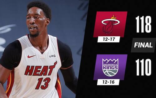 SACRAMENTO KINGS-MIAMI HEAT 110-118 | Successo importante per i Miami Heat, che si rimettono in carreggiata dopo la rimonta subita da parte dei Golden State Warriors. Questa volta la squadra di coach Spoelstra non si è fatta sfuggire una partita che avevano indirizzato andando avanti anche di 23 lunghezze, pur permettendo agli avversari di tornare a -10 sul finire del terzo quarto. Le doppie doppie di Marvin Bagley (19+10) e De’Aaron Fox (11 con 10 assist) non sono però servite ai Kings per evitare il quinto ko in fila
