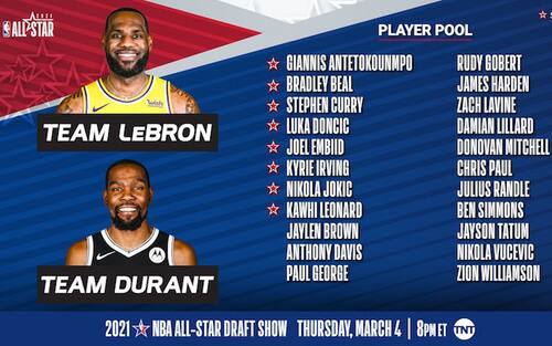 TUTTI GLI ALL-STAR A DISPOSIZIONE DEI DUE CAPITANI, LEBRON JAMES E KEVING DURANT