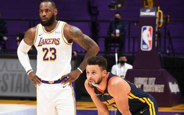 LOS ANGELES LAKERS-GOLDEN STATE WARRIORS 117-91 | I Lakers segnano 41 punti nel primo quarto, vanno sul +20 e nel secondo chiudono già la gara, che all’intervallo dice 73-44 (massimo stagionale per L.A.). Nella sua gara n°1.300 in stagione regolare, LeBron James ne mette 19 prima di andare a riposarsi in anticipo, uno dei 7 giocatori in doppia cifra per coach Vogel, tra cui anche Kyle Kuzma che va in doppia doppia dalla panchina con 12 punti e 11 rimbalzi