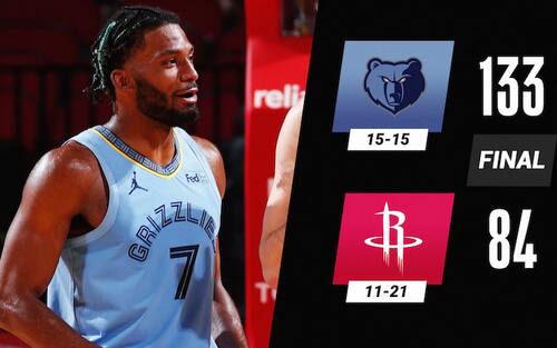 HOUSTON ROCKETS-MEMPHIS GRIZZLIES 84-133 | I titolari di Memphis segnano solo 48 dei 133 punti di squadra ma a partire da Justise Winslow (top scorer dei suoi con 20 punti in 21 minuti frutto di un ottimo 8/12 al tiro) è la panchina la grande protagonista del successo dei Grizzlies: 85 punti (!), record di franchigia, e 5 giocatori in doppia cifra soltanto tra le riserve, compreso un Brandon Clarke da 16 punti e 12 rimbalzi in 21 minuti. È di 35-8 il conto dei punti in contropiede per Memphis, che domina anche in area, doppiando i Rockets (74-36)
