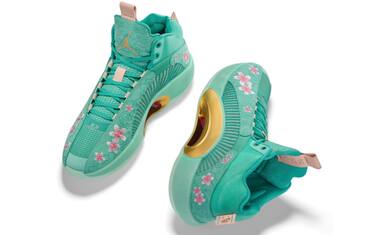 CHERRY BLOSSOM | Si chiamano proprio “Cherry Blossom” (fioritura di ciliegi) il modello che Jordan Brand ha scelto di produrre per onorare uno degli orgogli del Paese di Hachimura. I dettagli vedono un fiore di ciliegio disegnato nella suola all’interno della scarpa
