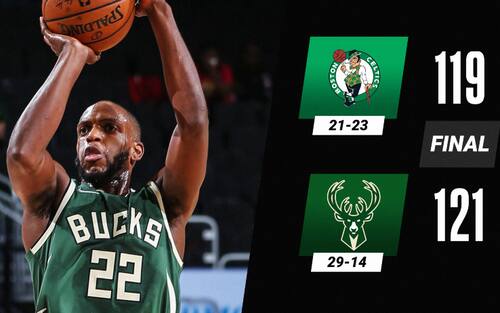MILWAUKEE BUCKS-BOSTON CELTICS 121-119 | Ottava vittoria consecutiva per i Bucks che trascinati dai 27 punti e 13 rimbalzi di Khris Middleton battono Boston in un match che Milwaukee ha pensato troppo presto di poter vincere: avanti anche di 25 lunghezze, i padroni di casa sul 90-65 a metà terzo quarto hanno completamente staccato la spina e lasciato spazio alla risalita Celtics - giunta fino al -2 con la tripla di Jaylen Brown a 92 secondi dalla sirena. L’ultimo disperato tentativo del sorpasso di Daniel Theis però si è spento sul ferro