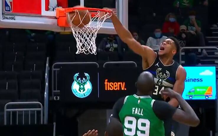 La chance di schiacciare in testa a un “sette piedi” (2.13) è sempre un qualcosa a cui nessun giocatore NBA vuole rinunciare. Se poi i centimetri del tuo avversario sono addirittura 226 (o 231 con le scarpe) ecco perché anche un due volte MVP come Giannis Antetokounmpo non si è lasciato sfuggire l’occasione, puntando in velocità il lungo dei Celtics e rifilandogli una prepotente schiacciata